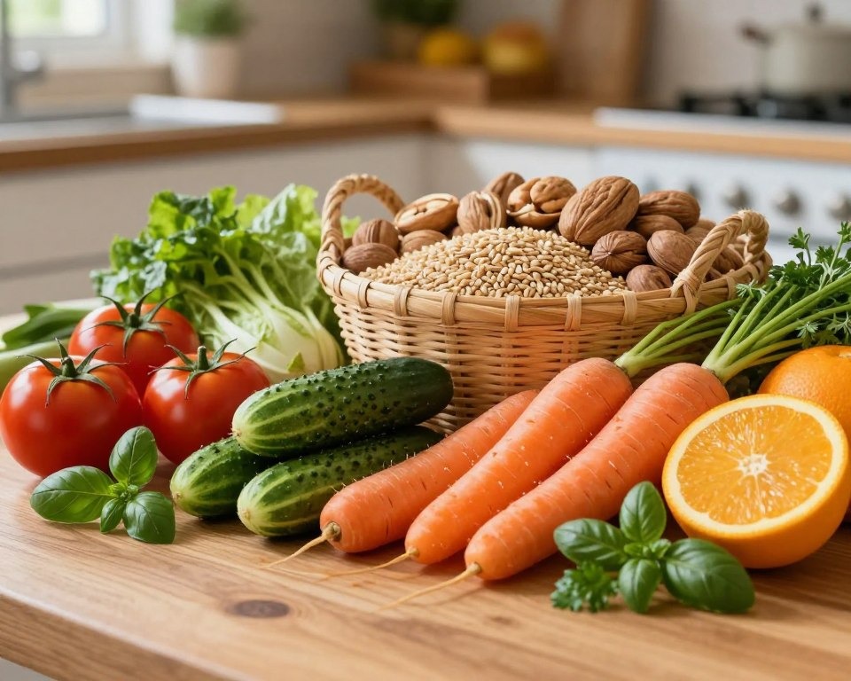 I always have fresh fruits, vegetables, whole grains, and lean proteins in my kitchen. Leafy greens, berries, nuts, and seeds are favorites. I also keep whole grains like quinoa, brown rice, and whole-wheat bread.